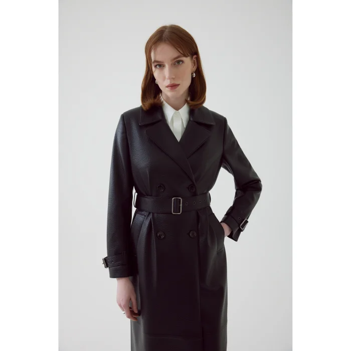 Product: Belted Eco Leather Black Regular Trench Coat
