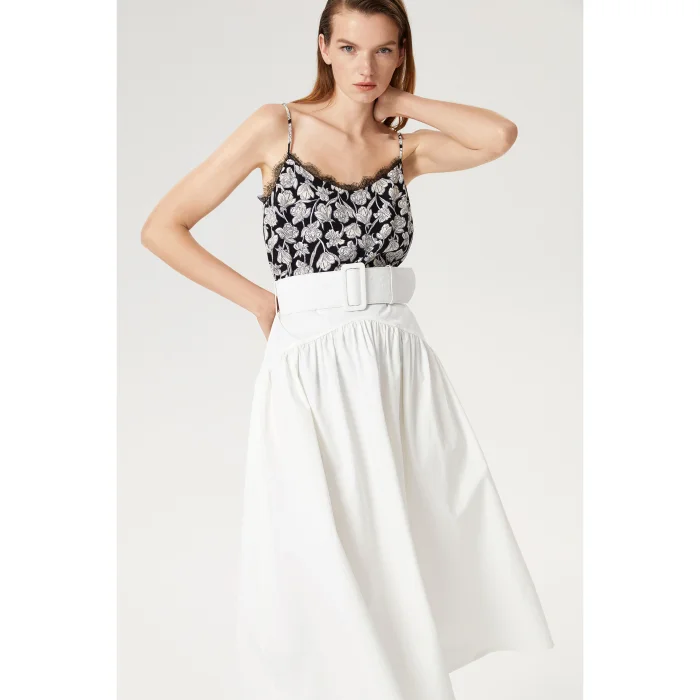 - Blouses with straps, which are one of the most comfortable parts of wardrobes, are in perfect harmony with almost every piece. The patterned blouse, which draws attention with its fluid form and modern look, complements effortless elegance. When paired with jeans and a blazer, it has a casual look, while when worn with pleated or straight satin skirts, it creates evening elegance. If you want to create a more dynamic style, you can pair the blouse with an asymmetrical skirt or classic trousers with pipe legs.