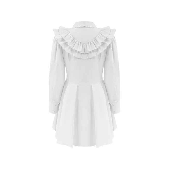 Ruffle detailed, shirt dress. It is sold from behind with zipper denim corsage belt. Length: 179cm waist: 55cm basin: 85 cm breast: 75 cm. Model wears 34 sizes