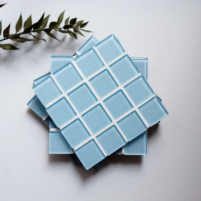 4 Pieces Handmade Mosaic Coasters - Baby Blue