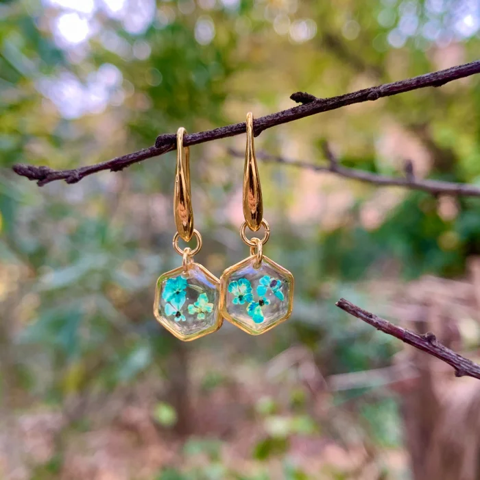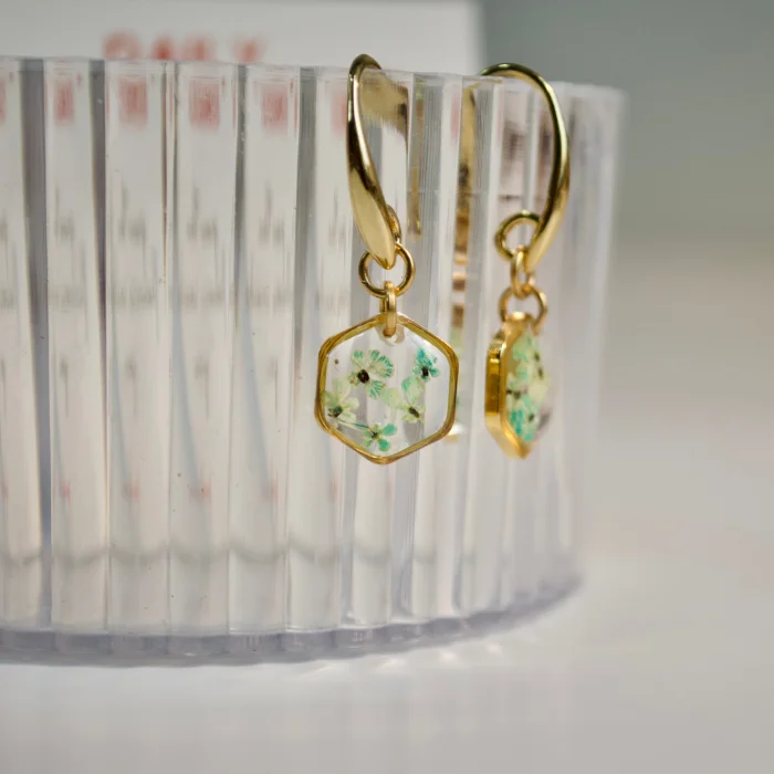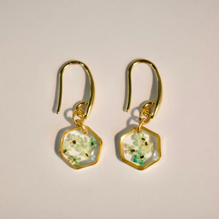 Product: Real Flower Teeny Weeny Hexagon Drop Earring