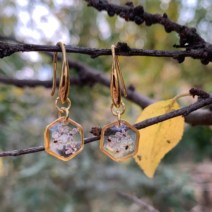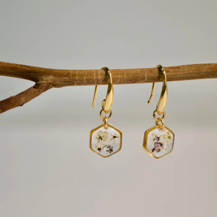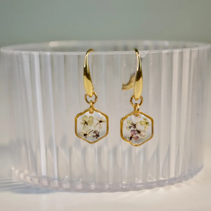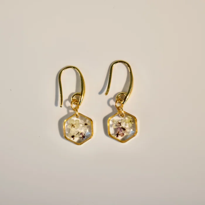 Product: Real Flower Teeny Weeny Hexagon Drop Earring