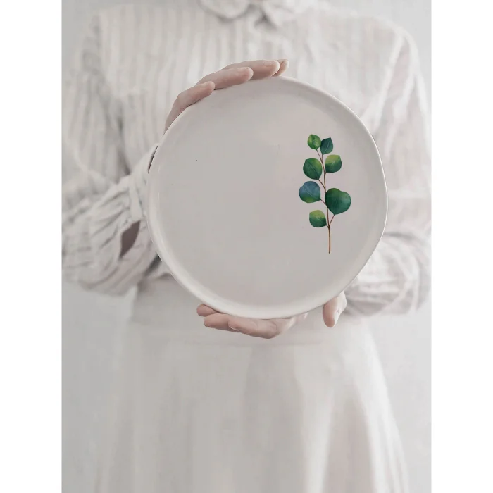 Lavender plate.  We first start by shaping the clay to produce our fusska plates, which are all handmade.  After waiting for it to dry, it enters the oven at 1000 degrees for the first firing.  It is then painted with transparent glaze and re-enters the oven at 1040 degrees for the second firing.  At the last stage, it is decorated and this time it enters the oven three times to see 840 degrees and is now ready to hit the road to meet your tables.