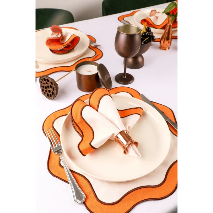The set consists of 4 handmade copper ring napkin buckles / rings. Its outer surface has a glossy appearance.