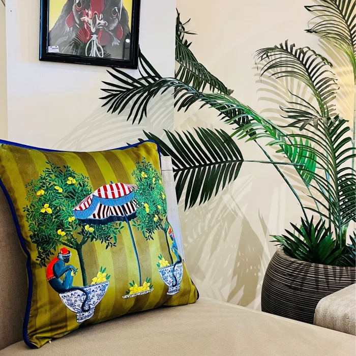 Product: Monkey Pattern Green Velvet Cushion Cover
