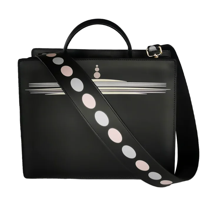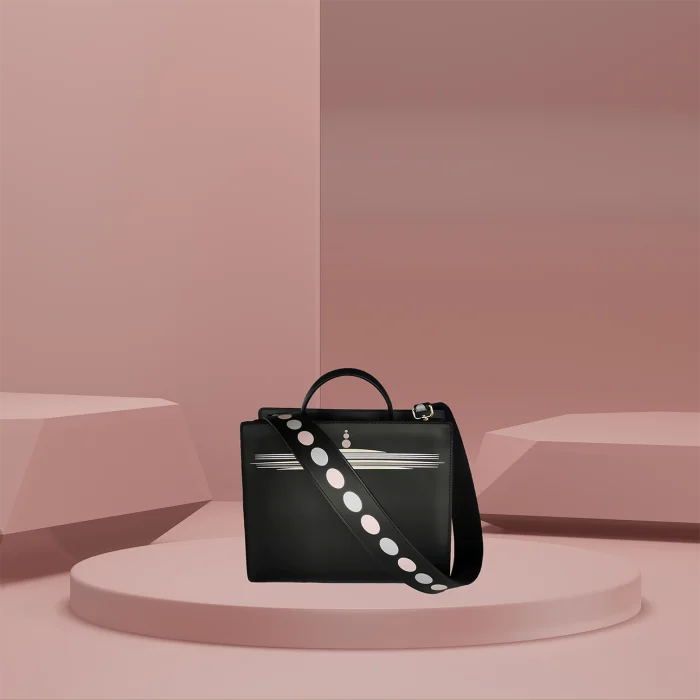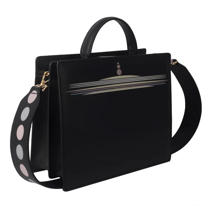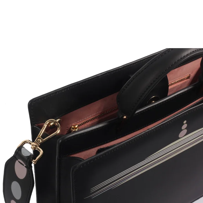 Ray Bag – Black          a100% Premium Quality Soft Calfskin Leather.           Gold Colour Bag Accessories.                   Detachable Shoulder Strap. Pink Alcantara Lining.         Bag Dimensions: Length: 22 cm – Width: 26 cm – Depth: 10 cm                               Shoulder Strap Length: 87 cm – Strap Width: 5 cm