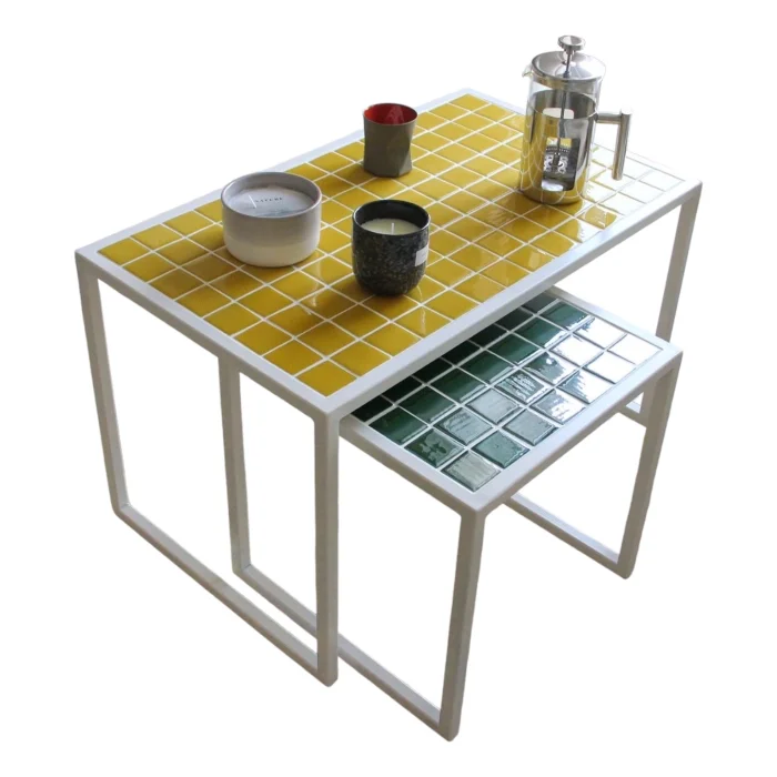 Measures: 41X41X41h 77X46X46h Weight: 15 kg Coating: Ceramic, glass mosaic or natural stone Frame: Metal Uses: Indoors and outdoors Delivery: 21 working days Made to order Since it is a handmade product, minor errors may appear