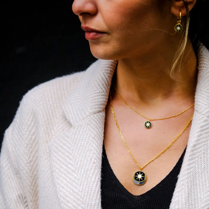 Necklace chains are 18K gold plated on 925 sterling silver.
