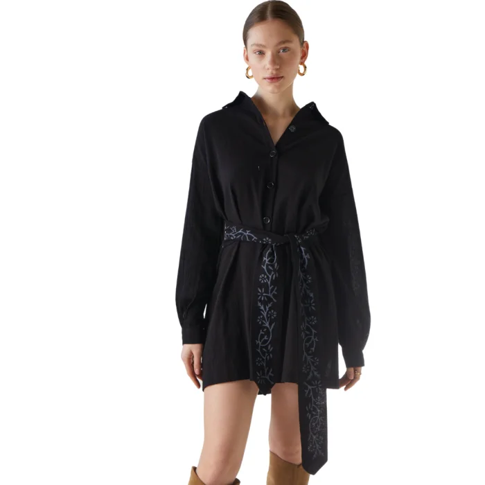 Product: Mini Shirt-dress With Flower Belt