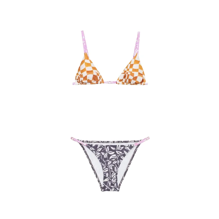 Leave yourself to the sweet harmony of Pastel Trio. Triangular bikini. There is a golden ring -shaped metal accessory in the front. It should connect from the back. Shoulder straps can be fully adjusted with the ring details of the golden metal setting. There are removable chest containers. Model S is wearing body. Model Dimensions: Length: 1.70, 81/64/91 Fabric Features: 85 %PES, 15 %EA