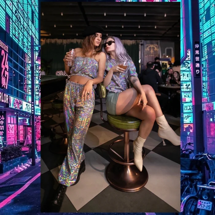 Are you ready for a journey into the future? To shine brightly? We are here with our Back to the Future collection and our special fabric. It is a loose and shabby unisex model. It changes color according to the angle of light.