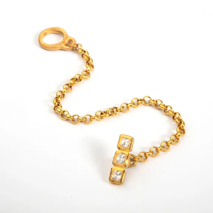Completely handmade and set with lab-grown princess-cut diamonds.