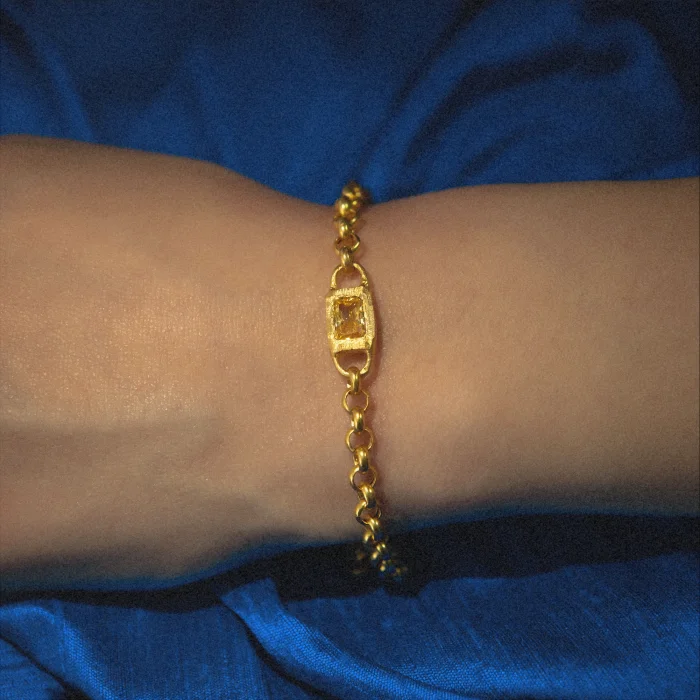 Vulcan Bracelet is made with recycled 925 sterling silver 24ct gold plated.