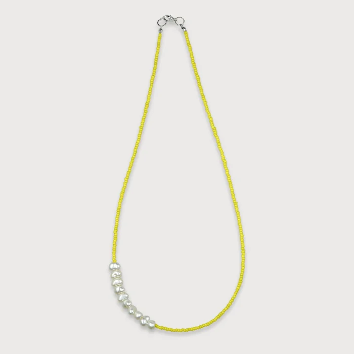 This necklace features a unique design that captures the essence of the sea breeze and the coolness of summer. Adorned with tiny sand beads and interspersed pearls, this necklace is the perfect complement for beach days and summer vacations.