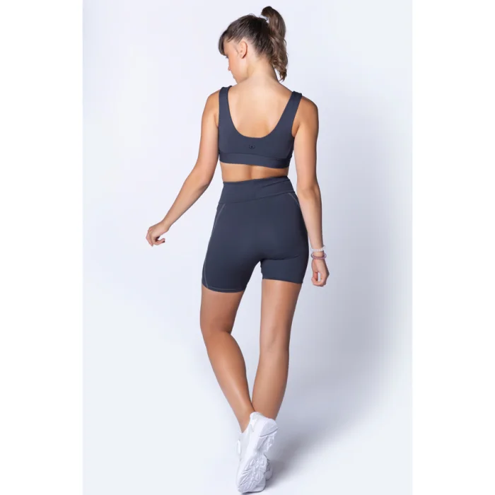X shape silvery stitches on the sides and high-waist biker in dark smoky grey. She provides unique comfort thanks to its elasticity and great body form thanks to its sculpturing fabric.