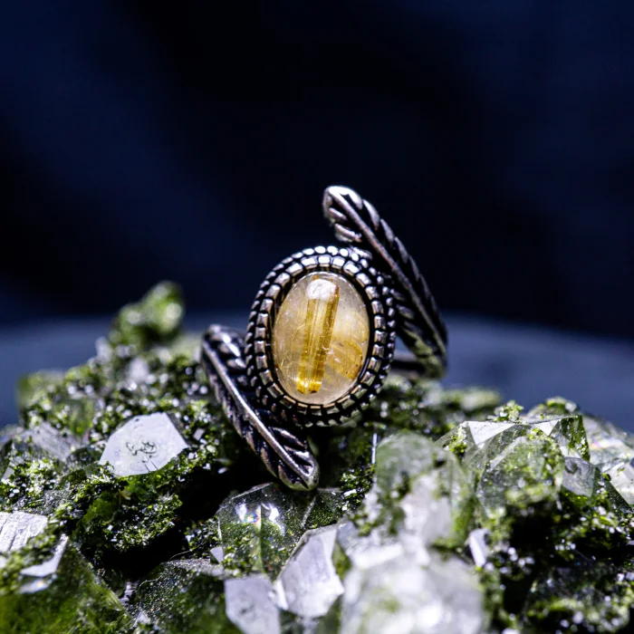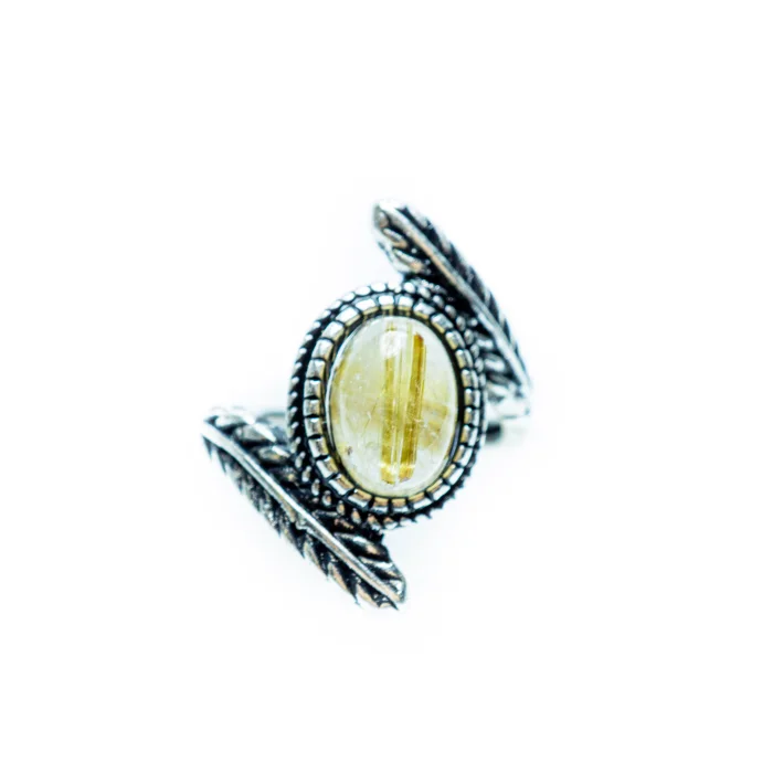 Product: Leaf Patterned Golden Rutile Quartz Ring