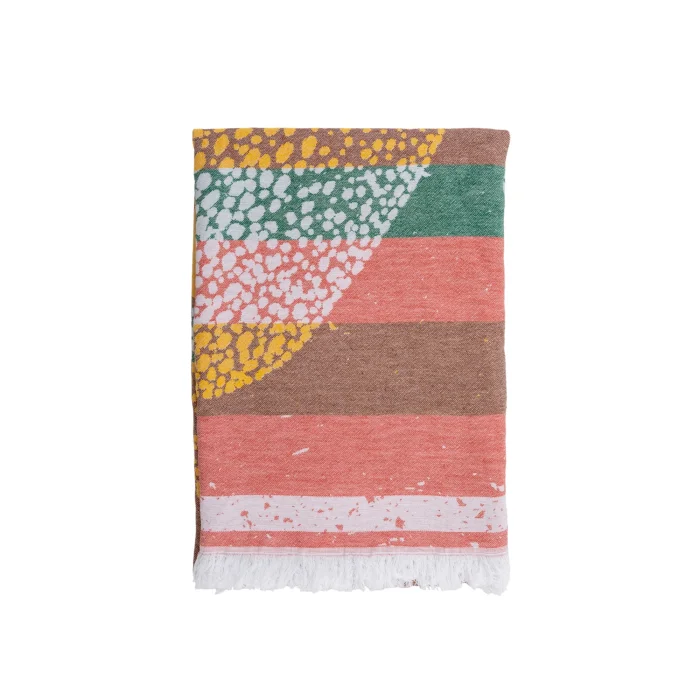 Fast Drying: Say goodbye to wet and heavy towels. It dries quickly, relaxing you and making you feel light on the beach; Lightweight: Easily transportable, it allows you to carry your beach belongings with ease; Soft: Pampers your skin with its soft texture and offers a comfortable use; Special Design: Colorful, vivid and cheerful designs inspired by the energy of the sun.; Portable: With its compact design, it fits easily into your beach bag and saves space.; Multifunctional: loincloth on the beach, shawl on cool summer evenings, dress with different tying methods, mat in yoga and sports.; Sandproof: Sand-proof: Sand-proof means that sticking to the beach is no longer a problem!; Material: 100% Cotton; Content: 1 Piece 90x170 cm Peshtemal