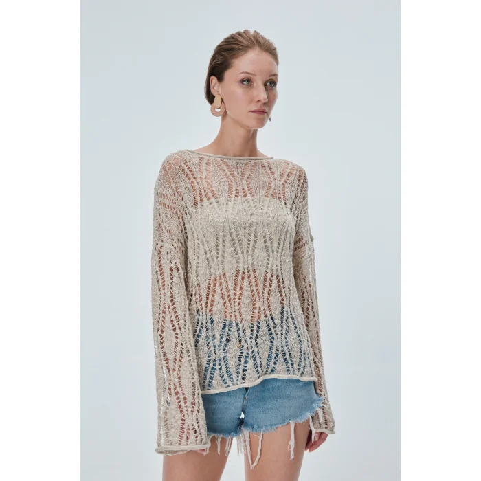 Openwork Long Sleeve Beige Blouse and Crop Top, which will fit perfectly into almost all your combinations, has been carefully designed to offer you comfortable elegance all day long. Model Size: Height 180 / Bust 78 / Waist 61 / Hips 89 Product Size: S-M Season: Summer 2024 Some of the accessories used in the shoots are for combination purposes. It may not be included in the product on sale.