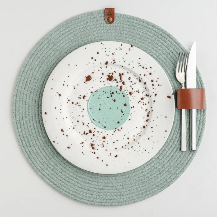 It is completely handmade using American service cotton rope and has a diameter of 40 cm. ; You can create your own combination by buying different colors to color your tables. ; Our products are made with high-quality genuine leather and eco-friendly materials. ; These unique products, designed by preserving the beauties of nature, offer you the perfect harmony of both elegance and naturalness. ;