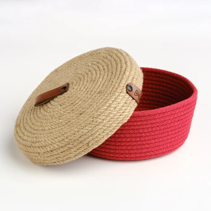 Product: Multi-purpose Cotton Rope Basket With Jute Lid