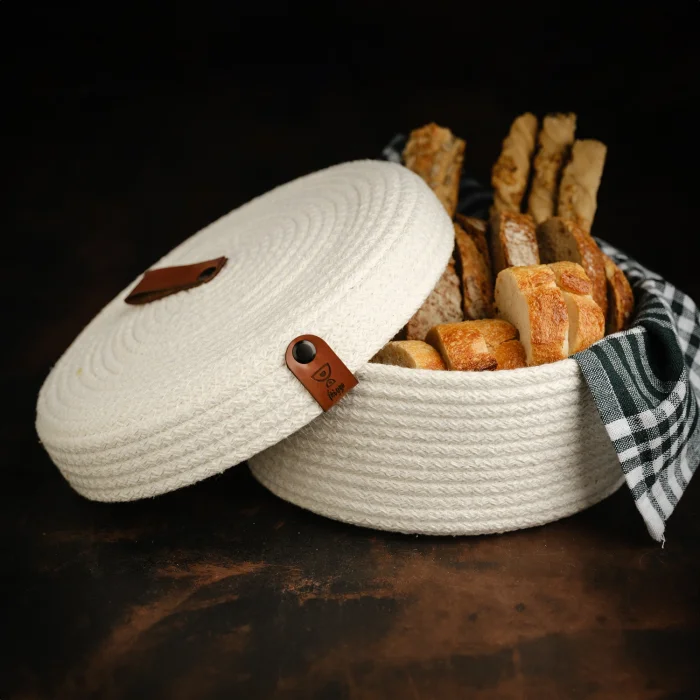 Stylish, decorative 100% handmade cotton rope basket in 20x8 dimensions with lid, which you can use as an organizer. You can use it in every area of your home, kitchen, bathroom, etc. to organize your belongings. ; Our products are made with high-quality genuine leather and eco-friendly materials. ; These unique products, designed by preserving the beauties of nature, offer you the perfect harmony of both elegance and naturalness. ;