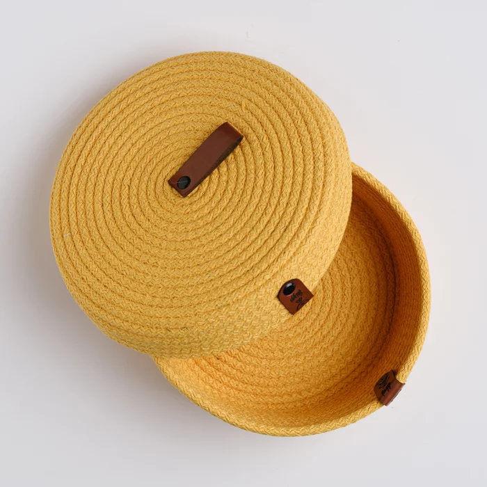 Stylish, decorative 100% handmade cotton rope basket in 20x8 dimensions with lid, which you can use as an organizer. You can use it in every area of your home, kitchen, bathroom, etc. to organize your belongings. ; Our products are made with high-quality genuine leather and eco-friendly materials. ; These unique products, designed by preserving the beauties of nature, offer you the perfect harmony of both elegance and naturalness. ;