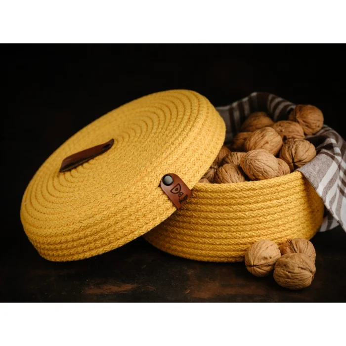 Stylish decorative 100% handmade cotton rope basket with lid in sizes 20×8 that you can use as an organizer. You can use it to organize your belongings in every area of your home.