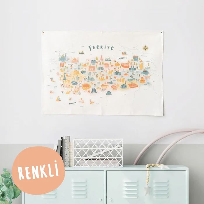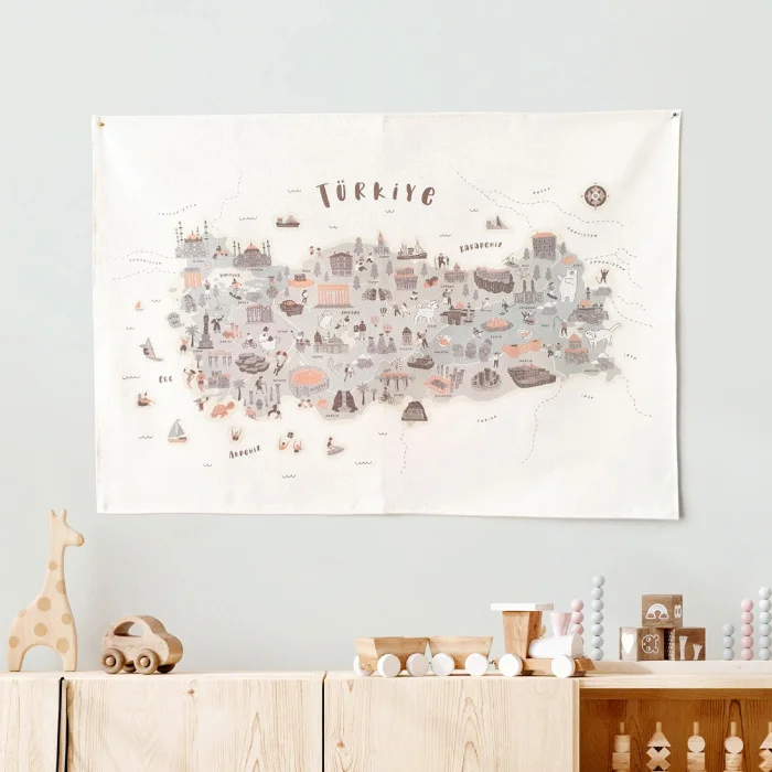 Turkey Map Decorative Wall Tapestry, Organic Natural Cotton
