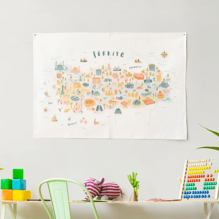 Turkey Map Decorative Wall Tapestry, Organic Natural Cotton