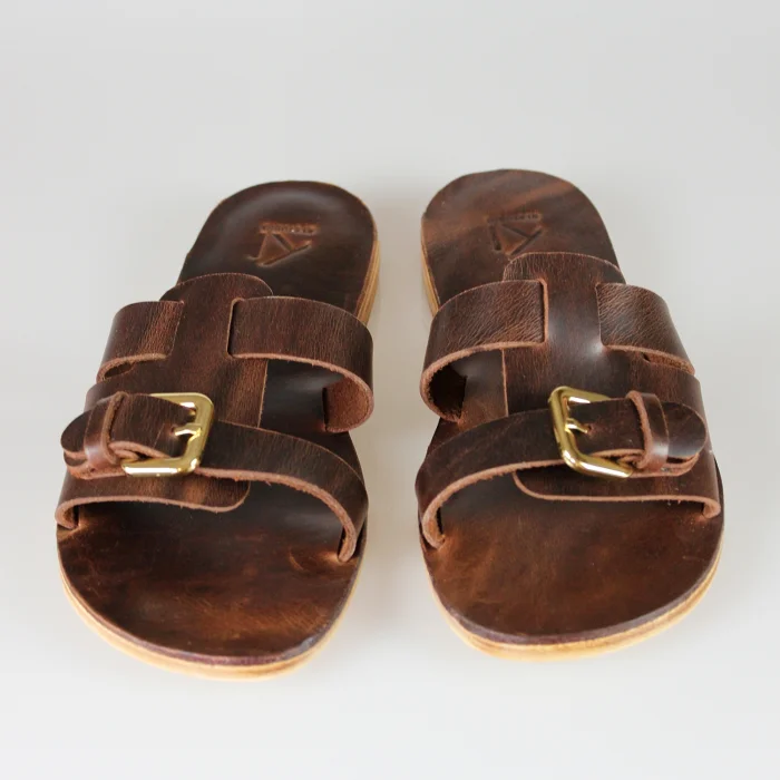 Natsu Buckle Detailed Slippers are made of high quality genuine leather from the sole to the upper. Its pet-supported sole has a comfortable wear. It provides a comfortable walk with the rubber details used in the leather sole design. With its stylish design, it is suitable for both city life and beach use.