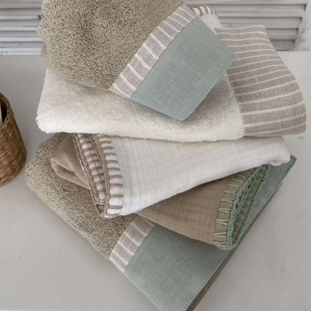 Face Towel Combined With Striped & Aqua Colored Linen