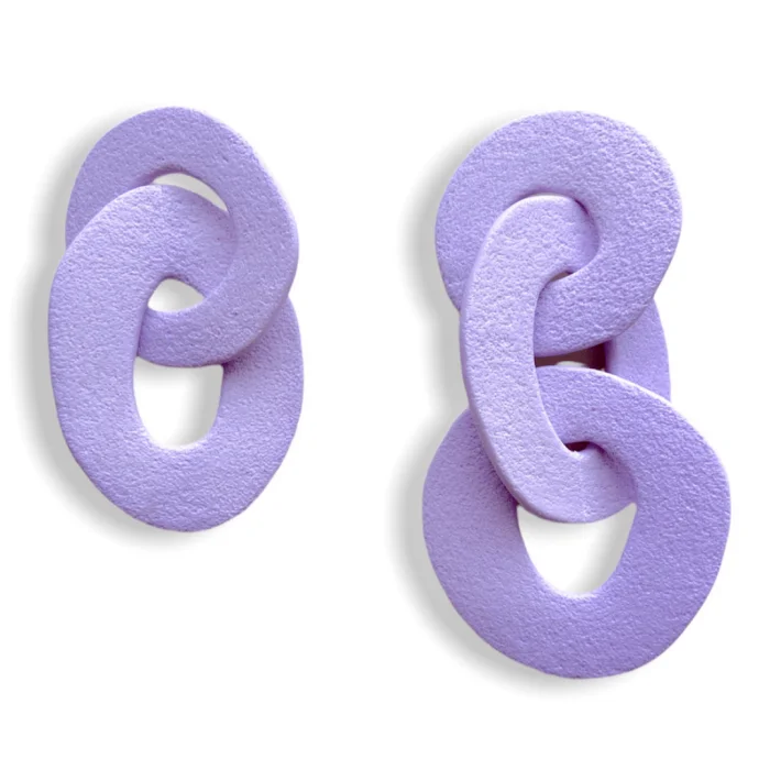 Polymer clay earring Designed asymmetrically. Earring backs are stainless steel. Lenght is 6-8 cm. It has 2 loops at one side and 3 loops on the other. Sizes and color may vary and have nuances because all designs are made by hand. Polymer clay is a very light weighted product.