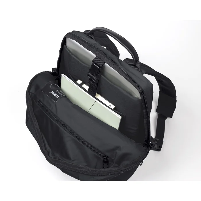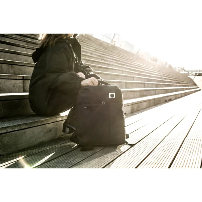 Laptop carrying capacity up to 14" rain protection Back support that makes it easy to carry Capacity : 16 L Material: 300D Polyester/PU backing PVC free Size: 30 x 38 x 14 cm Weight: 670 g