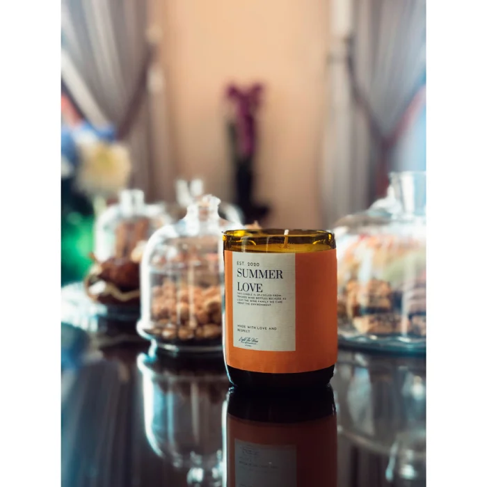 Up-cycled from trashed wine bottles and filled with scented, %100 organic soy wax. Small variations need to be considered in each product since all the containers are gathered from a unique wine bottle. Contains 275 gr of soy wax.