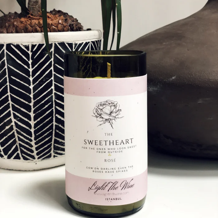 Up-cycled from trashed wine bottles and filled with scented, %100 organic soy wax. Small variations need to be considered in each product since all the containers are gathered from a unique wine bottle. Small imperfections may be present since they are all hand crafted. The edges are not sharp. Contains 500 gr of soy wax.