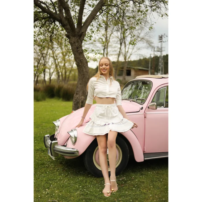 100% Cotton Satin fabric of the handmade ZENDAYA Short Shirt was shaped in the hands of a meticulous Artisan; Afterwards, it came to life in the form of "EFE OYASI" on the fingertips of a talented Turkish woman.