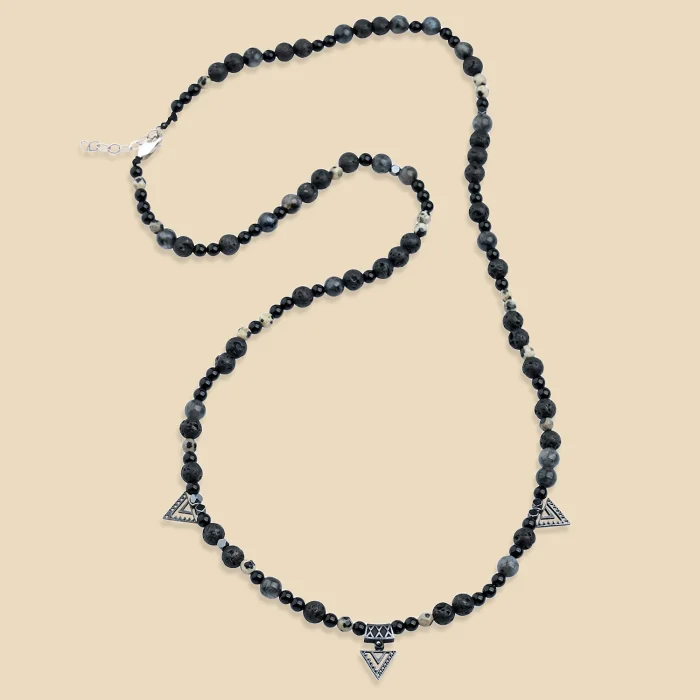 925 Sterling silver, handmade necklace with Lava, Spinal, Larvikite, Onyx natural stones