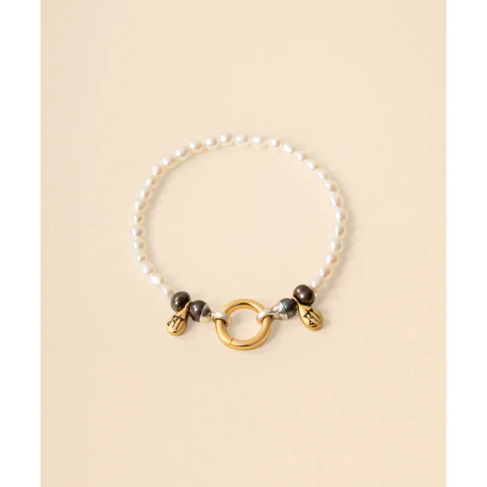 925K silver, 22K gold plated, white pearl handmade bracelet