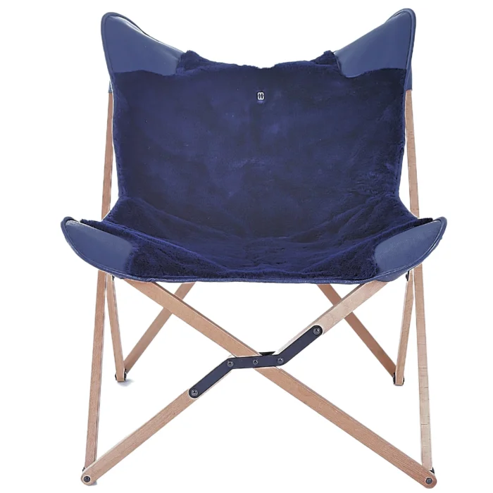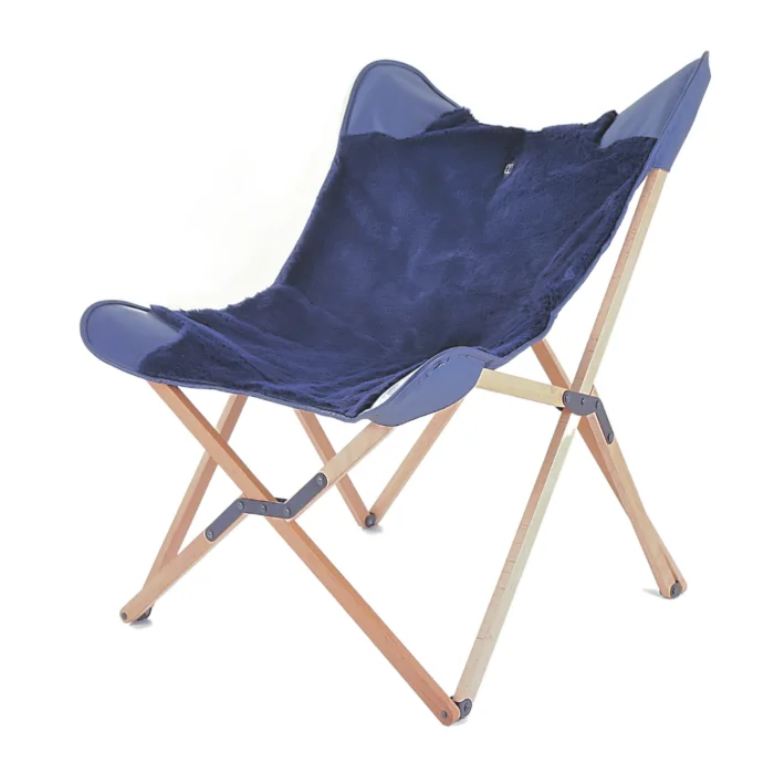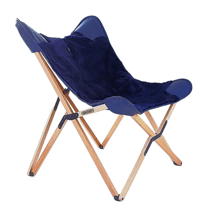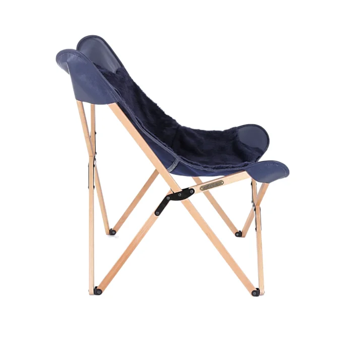 It is made of navy blue genuine leather and plush fabric in navy blue, and its the wood is made of first class dried beech wood. Its the wood is polished with silk matte natural color produced for outdoor use. It is foldable. The closed size is 116 cm x 12 cm. Its weight is 6 Kg. It is also supplied with a carrying bag for easy carrying.