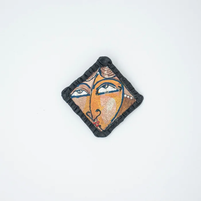 Handmade Mavitan drawings on Hahnemühle paper The frame is shaped with polymer clay Each brooch has a stopper as a closure type. You can leave the tip of the needle inside or outside the garment. Placing it right in the middle of the collar is another suggestion for use. Brooches are sent in their own special box with a gift package. This artist-made brooch is a part of Illustrated Brooches à la Bihrat Serie. Each handmade and unique piece has a certificate with the artist's signature.