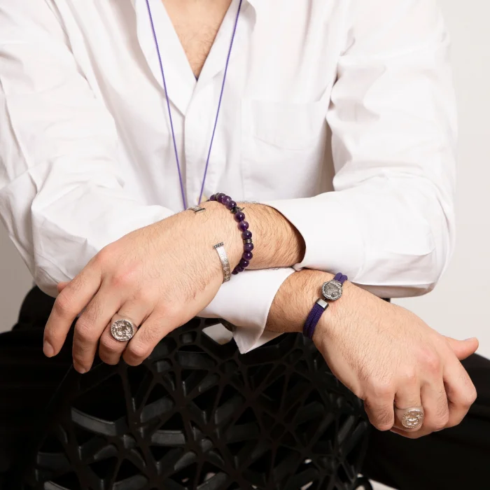 Product: Helmet 925 Sterling Silver Amethyst Men's Bracelet