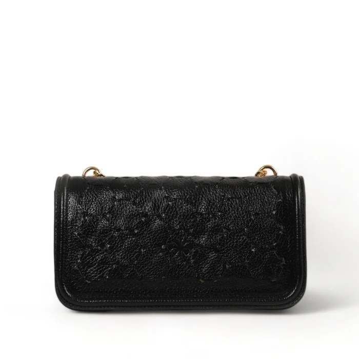 The interior is lined with recycled polyester and includes a zippered pocket and phone case. The hand-knitted body adds a unique touch to this versatile bag. The chain handle can be hung on the shoulder as a double layer or diagonally as a single layer. Width: 23 cm Height: 12 cm Depth: 6cm Chain handle length at shoulder strap: 27 cm Chain handle length hanging diagonally: 50 cm
