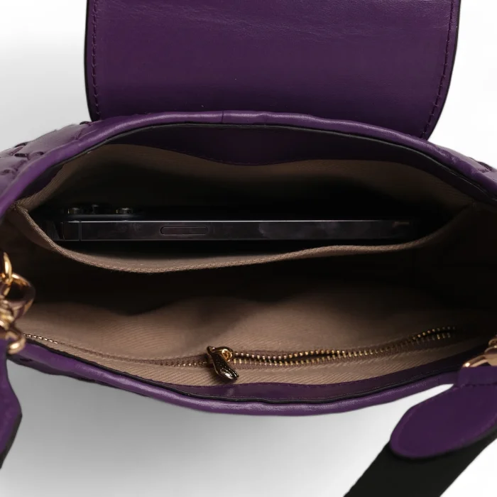 It provides versatility and convenience with its detachable and adjustable sized cross strap feature. You can keep your belongings organized with the inner zippered pocket and phone case. The interior is lined with recycled polyester. Width: 28 cm Height: 22 cm Depth: 6 cm Shoulder strap distance: 18 cm Cross strap size adjustable.