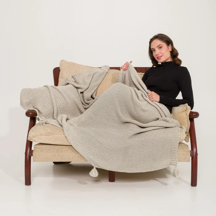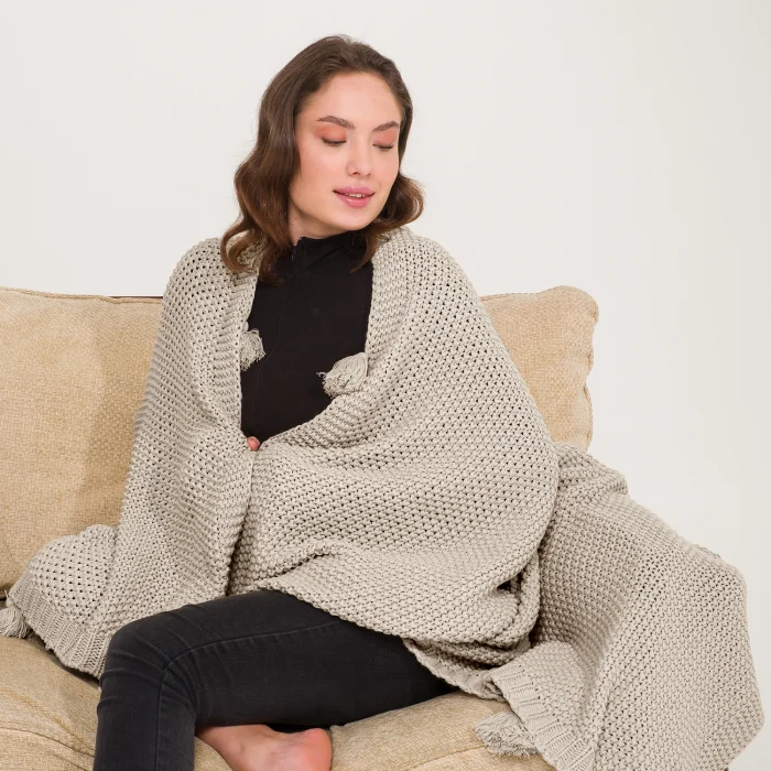 Coco Brass Knitted Knitwear Blanket is made of 100% acrylic.