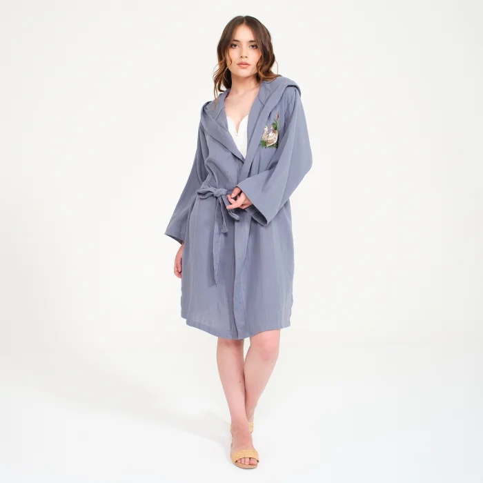 Product: Personalized Duck Embroidered Pool, Beach, Bath Hooded Cover-up Robe For Women- Muslin And Cotton Kimono Bathrobe
