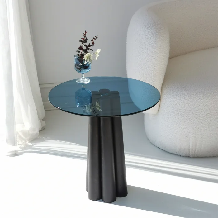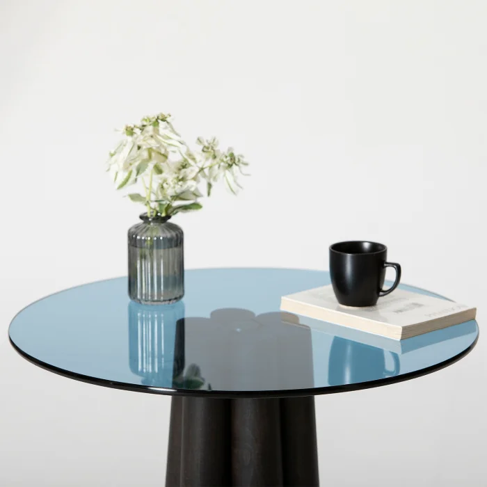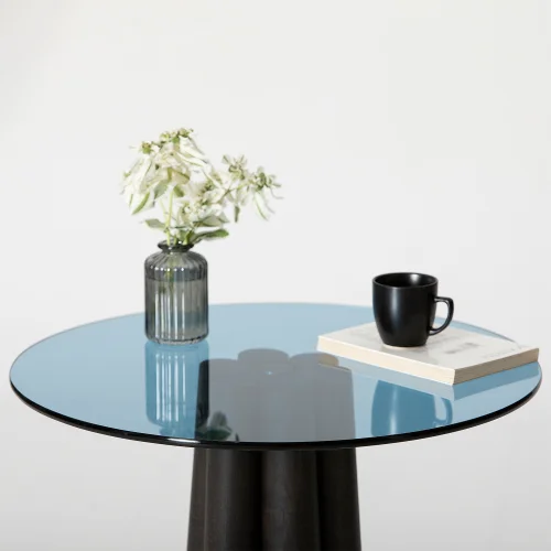 •The price is valid for 1 coffee table. Other accessories and furniture in the picture are not included in the price. • Dimensions: Width: 50 Cm. Height: 50 cm. Depth: 50 cm. • Tempered blue color glass is used. • Tempered glass; It is a safe glass that is resistant to impacts and breakage, has high strength, and does not create any danger when broken. The resistance of normal glass is increased by subjecting it to heat treatment with advanced technology. When tempered glass is broken, it breaks into small blunt pieces. Therefore, it does not pose a danger to human health and safety, it is safe. • It is hand-colored, unpolished, using water-based preservatives that are harmless to the environment and children's health. Since it is a natural tree and each one is unique, there may be different vein images and color differences from what is seen in the photo. • Sepha foot is made of dried beech wood. • The stand is sent disassembled. It is easily mounted in place by simply turning the glass table by hand. • Materials suitable for the environment and health are used. • It is domestic production with 100% domestic material.