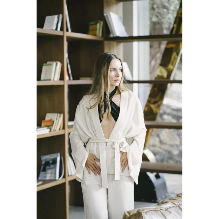 Achieve elegance with a cream glitter viscose padded shirt jacket. With its modern cut and stylish details, this jacket; It allows you to reflect your style in any environment. You will feel the difference with its special design.