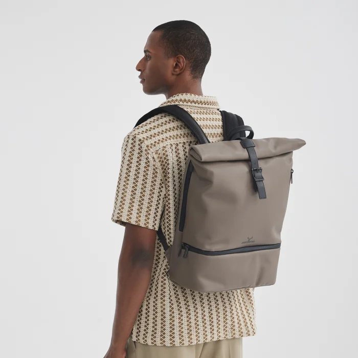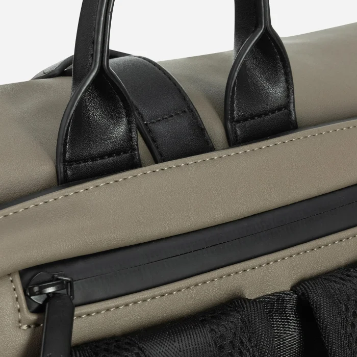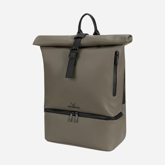 The main sections at the back and front: Front main compartment with magnet and lid Zippered bottom compartment Zippered side compartment 4 interior compartments without zippers Zippered rear main compartment; Padded laptop compartment in the inner rear (16") Zippered/non-zippered interior compartments Zippered compartments on the rear exterior Adjustable shoulder strap Nordbron Logo 100% Artificial Leather Water repellent fabric feature Width: 38 cm Height: 44 cm Inner depth: 16 cm Volume: 26L Weight: 1300 gr.