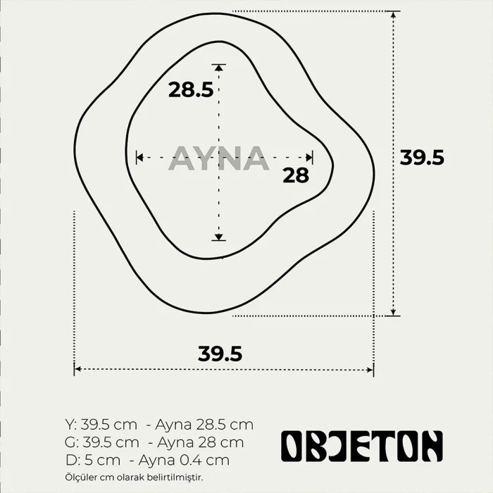 It has an organically shaped design. With its concrete frame and organic form, it offers both a natural and modern look. It gives different usage scenarios. Product Dimensions: 39.5 x 39.5 x 5 cm