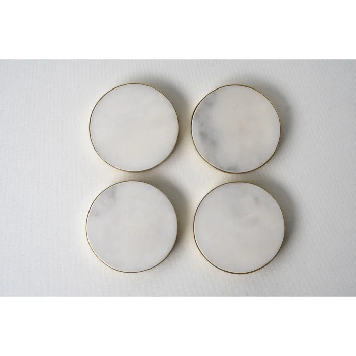 Frame: Solid BrassMaterial: White, Black, Calacatta viola marble and travertine.Product Dimensions: Diameter: 10 cm Height: 1 cm (approx)Weight:920 g- Colour and pattern may vary for each object reflecting the raw/unique beauty of marble, making every item one of a kind.